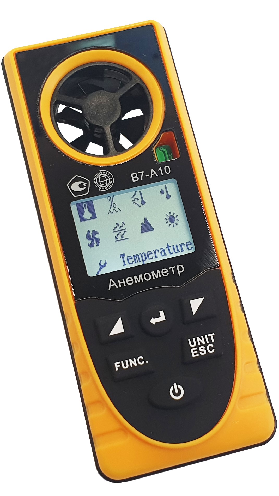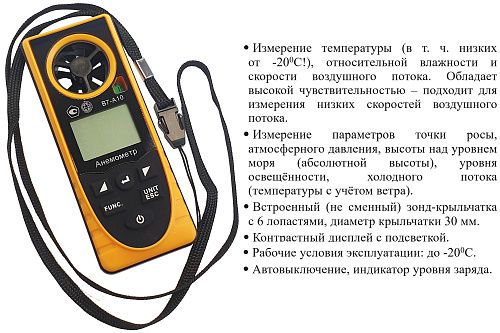 Диапазон измерения величины «холодный ветер», °С - В7-А10 (разрешение 0,1 °С, погрешность ±2 °С, время отклика 1 с) |